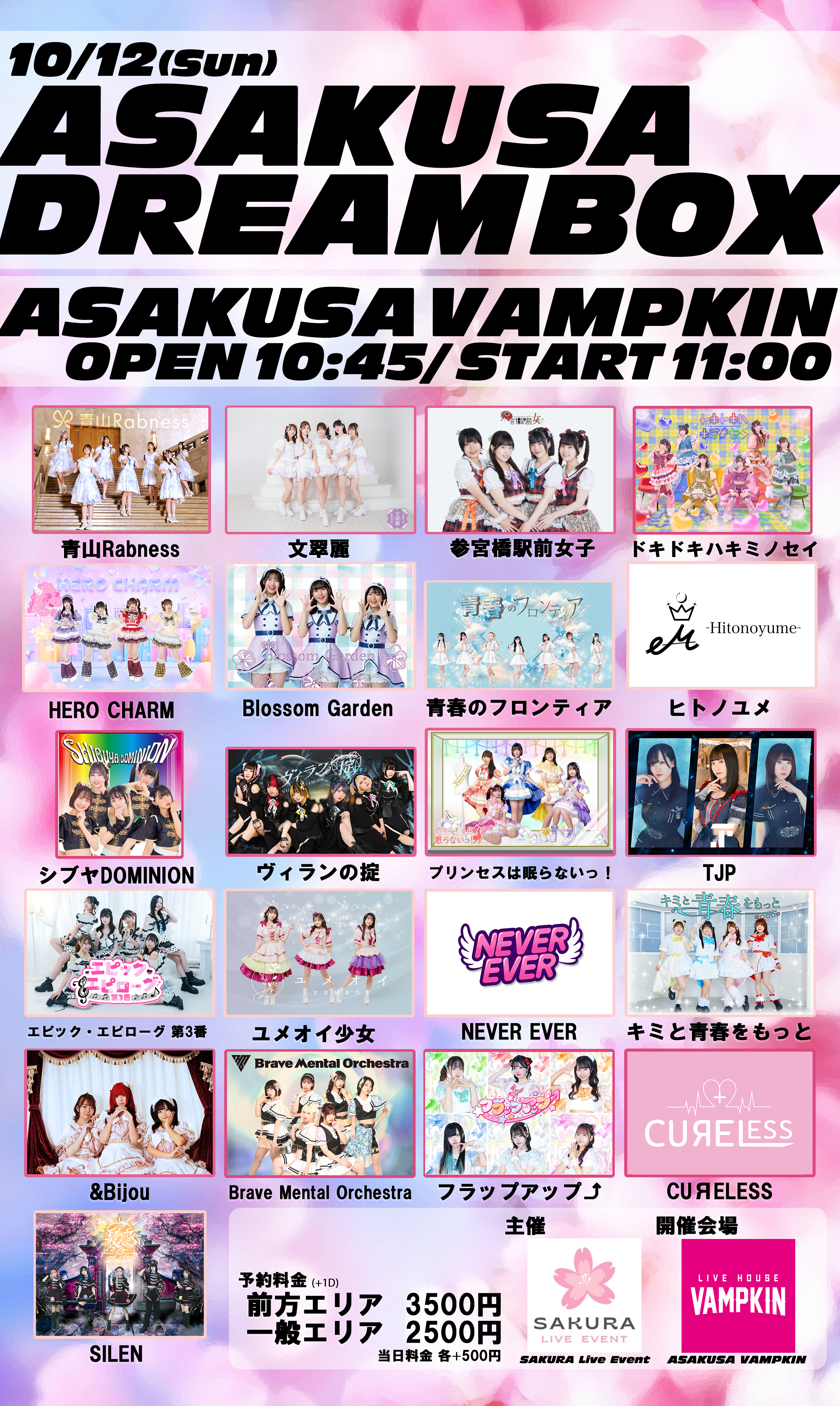 - 青山Rabness/文翠麗/参宮橋駅前女子/NEVER EVER/ドキドキハキミノセイ/ シブヤDOMINION/ヴィランの掟/プリンセスは眠らないっ!/青春のフロンティア/TJP/ HERO CHARM/ヒトノユメ/エピック・エピローグ 第3番/Blossom Garden/キミと青春をもっと/ &Bijou/ユメオイ少女 フラップアップ⤴/CUЯELESS/Brave Mental Orchestra/SILEN