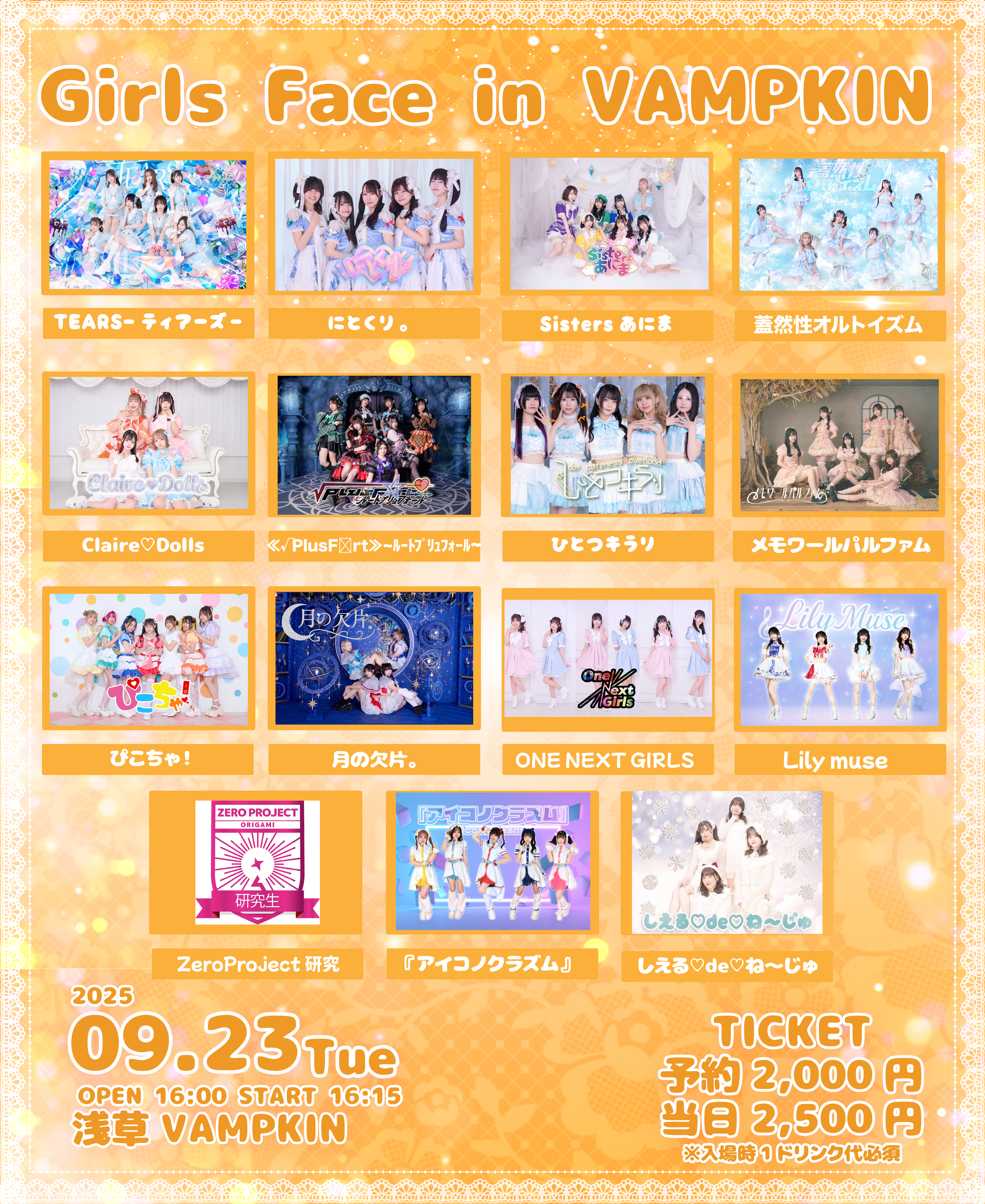 - 料金:予約2000円 当日2500円 (入場時1ドリンク必須)