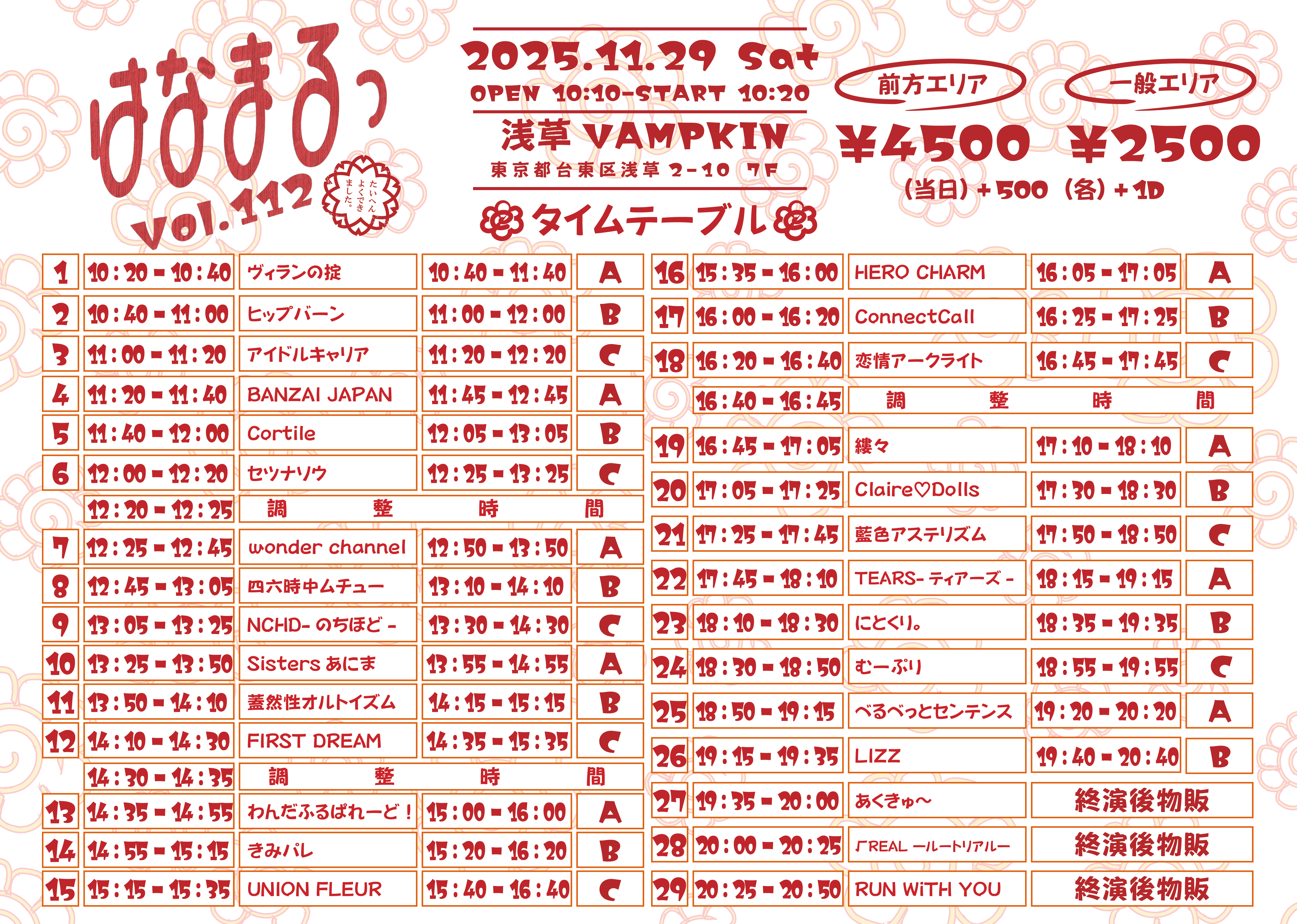 - TEARS-ティアーズ-/Sistersあにま/にとくり。/蓋然性オルトイズム/BANZAI JAPAN/藍色アステリズム/恋情アークライト/RUN WiTH YOU/ヒップバーン/wonder channel/HERO CHARM/ヴィランの掟/ConnectCall/縷々/Claire♡Dolls/Cortile/わんだふるぱれーど!/むーぷり/あくきゅ~/四六時中ムチュー/UNION FLEUR/セツナソウ/FIRST DREAM/LIZZ/べるべっとセンテンス/きみパレ/√REAL -ルートリアル-/アイドルキャリア/NCHD-のちほど-/