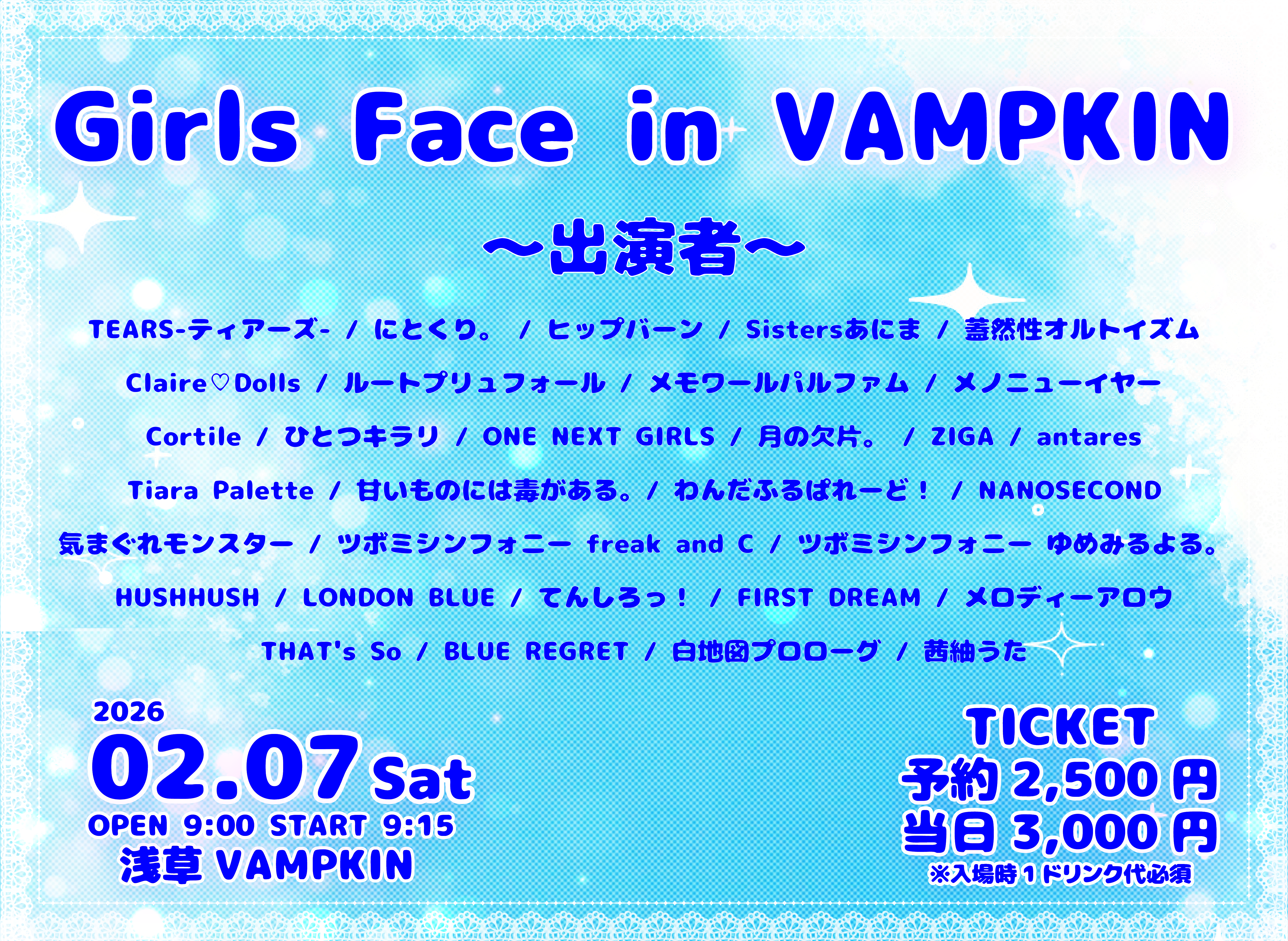 - 料金:予約2500円 当日3000円 (入場時1ドリンク必須)