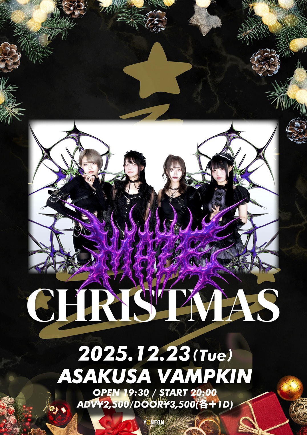 浅草 VAMPKIN スケジュール 2025.12.23(Tue) MAZE CHRISTMAS [ACT] MAZE [OPEN/START] OPEN19:30 / START20:00 [料金] ADV¥2,500/DOOR¥3,000(各+1D) https://tiget.net/events/448228
