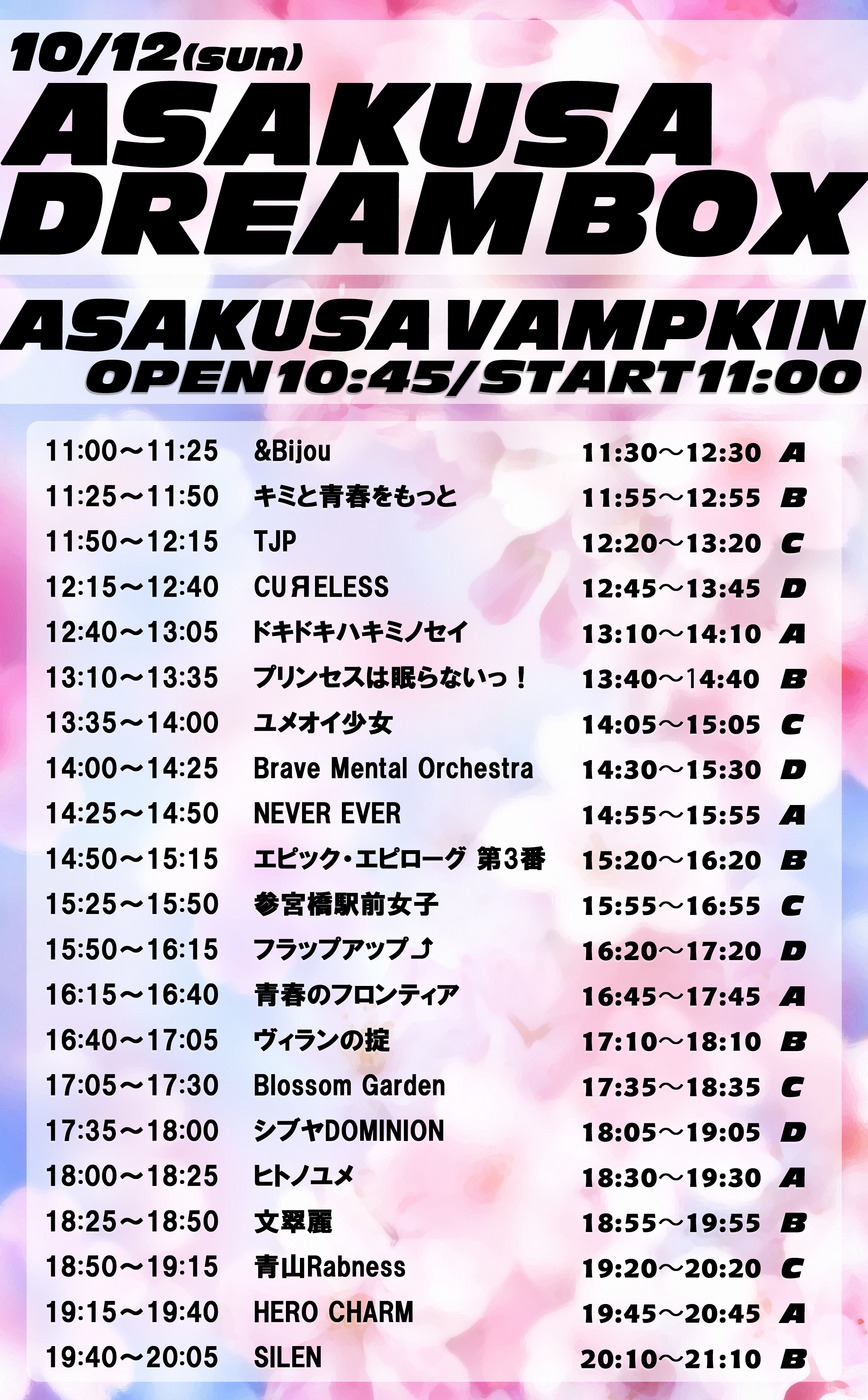 - 青山Rabness/文翠麗/参宮橋駅前女子/NEVER EVER/ドキドキハキミノセイ/ シブヤDOMINION/ヴィランの掟/プリンセスは眠らないっ!/青春のフロンティア/TJP/ HERO CHARM/ヒトノユメ/エピック・エピローグ 第3番/Blossom Garden/キミと青春をもっと/ &Bijou/ユメオイ少女 フラップアップ⤴/CUЯELESS/Brave Mental Orchestra/SILEN