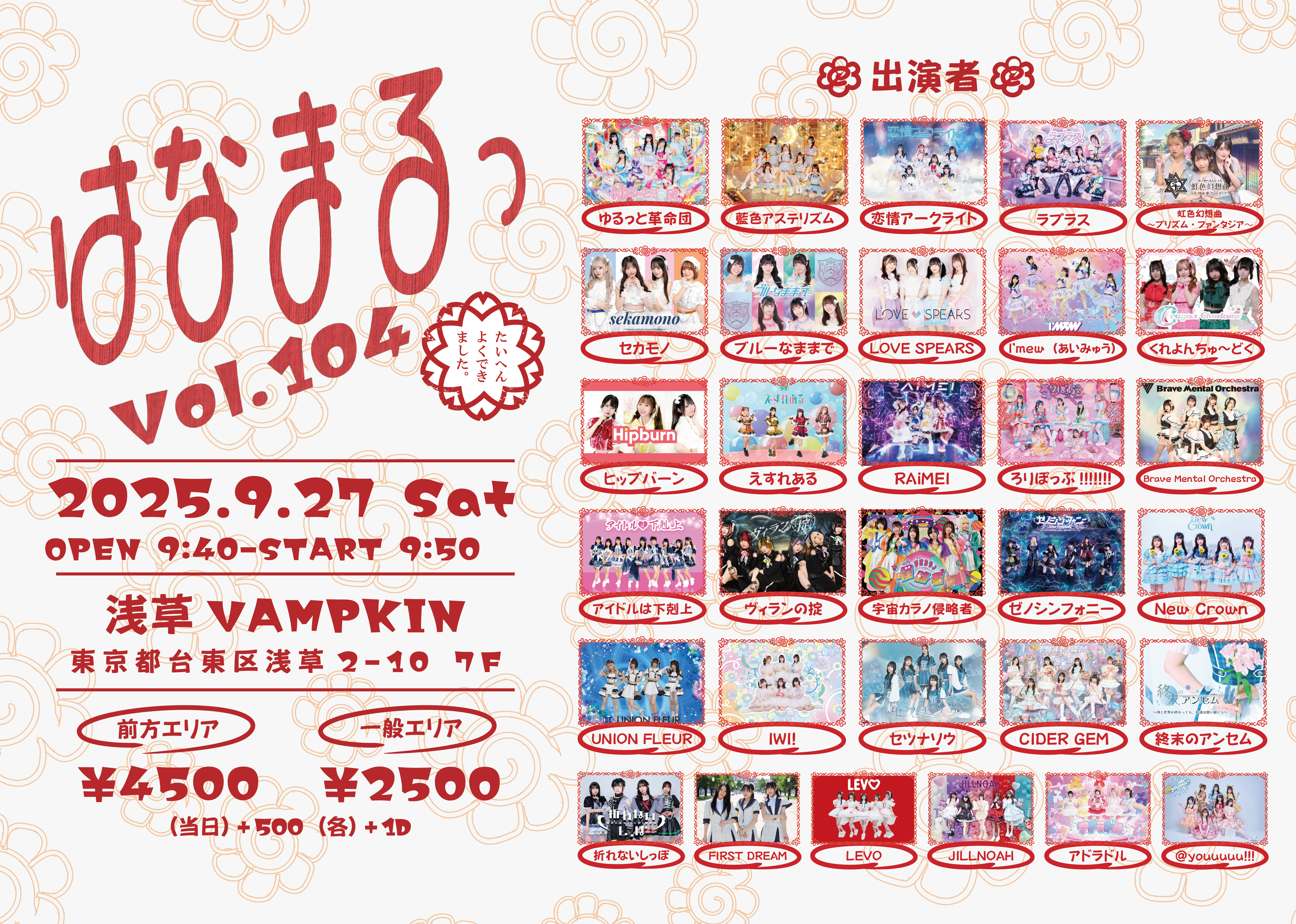 - ゆるっと革命団/藍色アステリズム/恋情アークライト/ラプラス/虹色幻想曲〜プリズム・ファンタジア〜/セカモノ/ブルーなままで/LOVE SPEARS/I'mew(あいみゅう)/くれよんちゅ~どく/ヒップバーン/えすれある/RAiMEI/ろりぽっぷ!!!!!!!/Brave Mental Orchestra/アイドルは下剋上/ヴィランの掟/宇宙カラノ侵略者/ゼノシンフォニー/New Crown/UNION FLEUR/IWI!/セツナソウ/CIDER GEM/終末のアンセム/折れないしっぽ/FIRST DREAM/LEVO/JILLNOAH/アドラドル/@youuuuu!!!