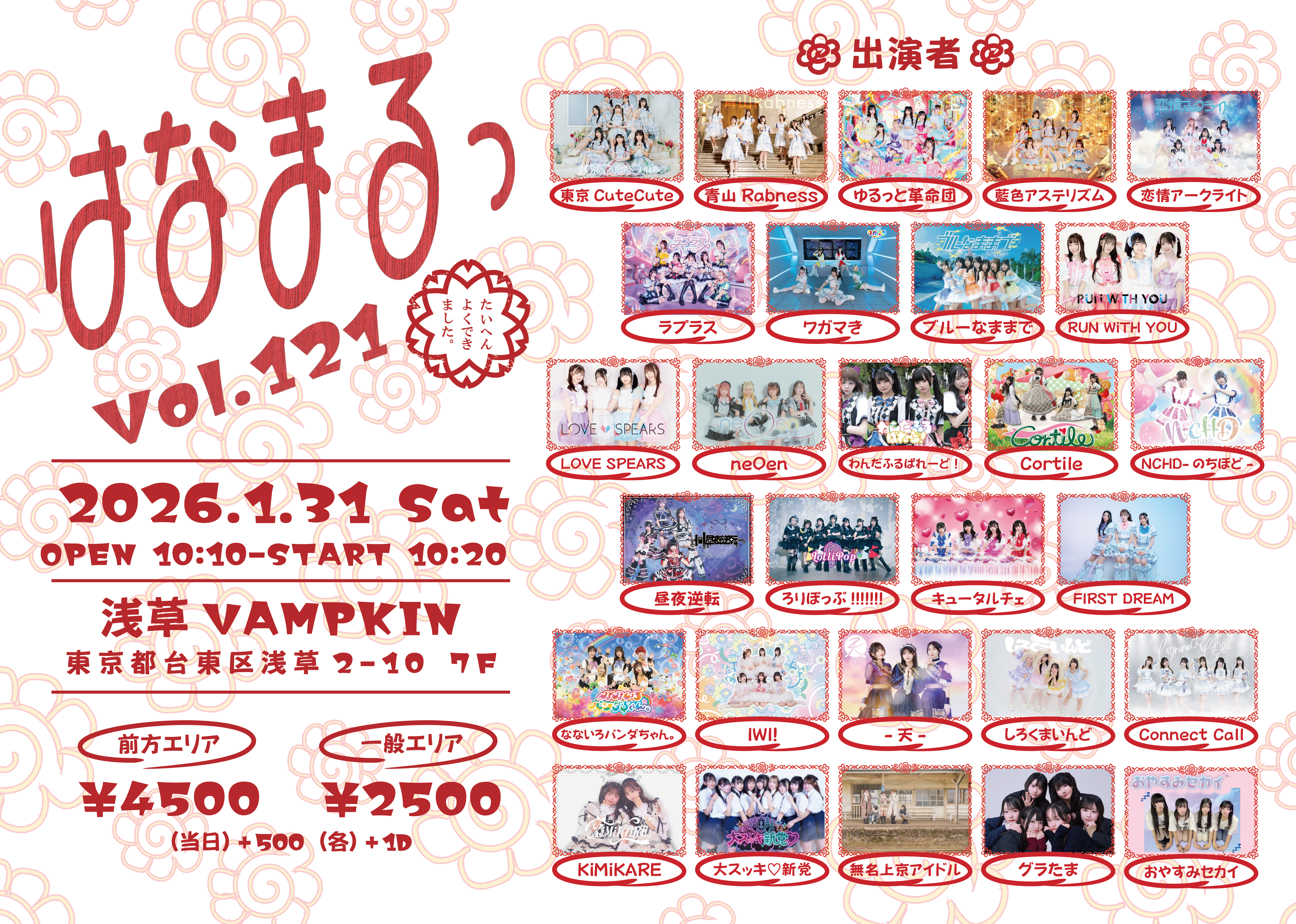 - 東京CuteCute/青山Rabness/ゆるっと革命団/藍色アステリズム/恋情アークライト/ラプラス/ワガマき/ブルーなままで/RUN WiTH YOU/LOVE SPEARS/neOen/わんだふるぱれーど!/Cortile/NCHD-のちほど-/昼夜逆転/ろりぽっぷ!!!!!!!/キュータルチェ/FIRST DREAM/なないろパンダちゃん。/IWI!/-天-/しろくまいんど/Connect Call/KiMiKARE/大スッキ♡新党/無名上京アイドル/グラたま/おやすみセカイ