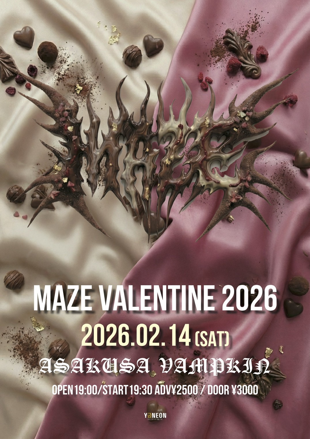 浅草 VAMPKIN スケジュール 2026.2.14(Sat) MAZE VALENTINE 2026 [ACT] MAZE [OPEN/START] OPEN19:00/START19:30 [料金] ADV¥2500/DOOR¥3000 販売期間:1/27(火)〜2/14(土)12:00 https://tiget.net/events/462494