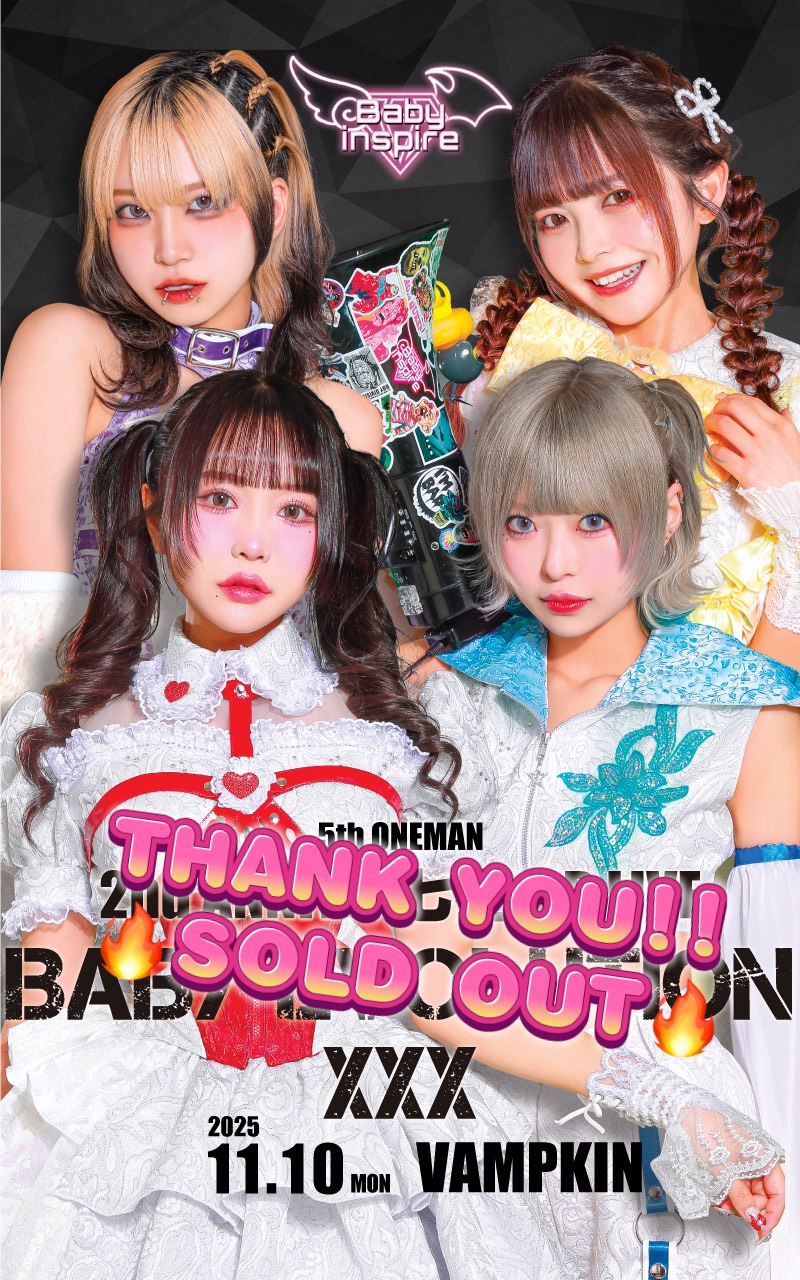 浅草 VAMPKIN スケジュール 2025.11.10(Mon) 2nd Anniv&七星BD LIVE BABY EVOLUTION XXX [ACT] Baby inspire [OPEN/START] 18:15 / 18:40 [料金] SS¥30,000- / S¥10,000- / A¥2,000- / 手売り¥1,000- 各1D別途 https://t.livepocket.jp/e/baby11_10