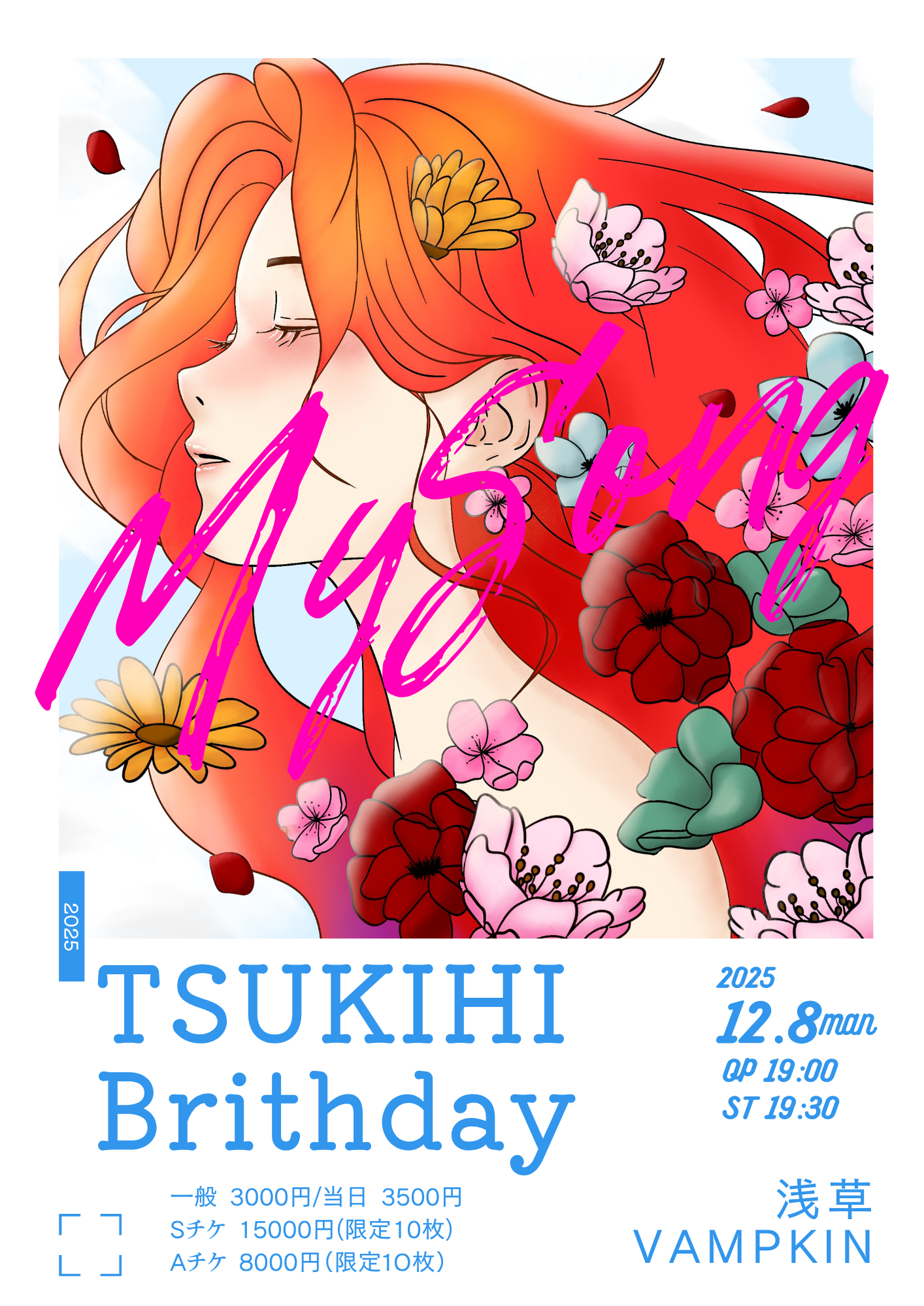 - Sチケ 15000円(限定10枚) Aチケ 8000円(限定10枚)一般 3000円 当日 3500円