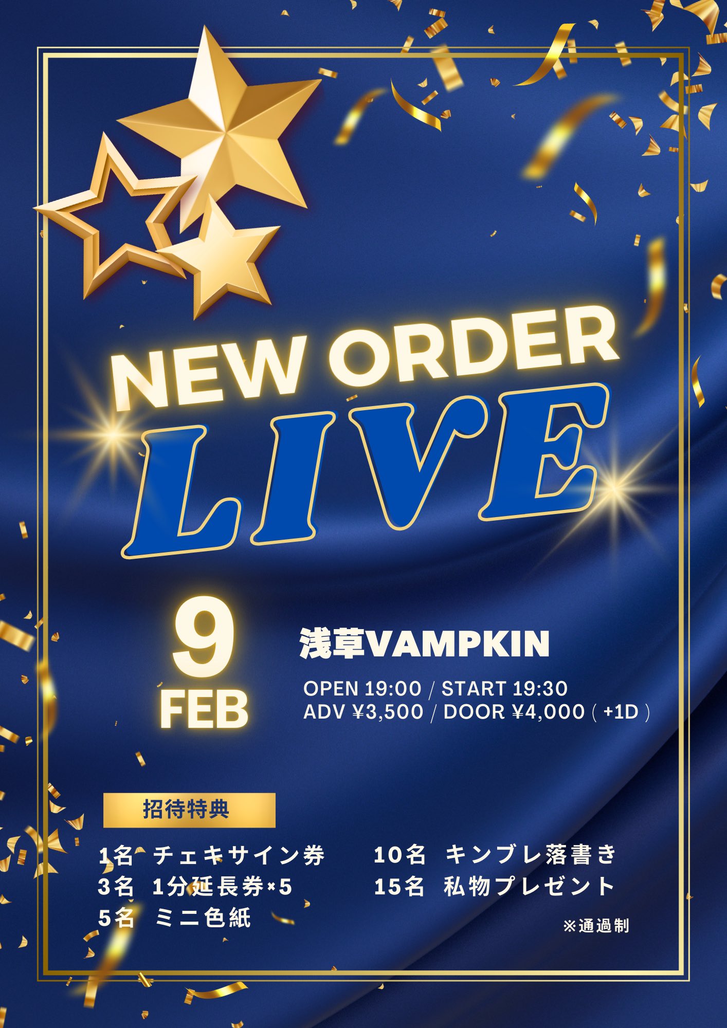 浅草 VAMPKIN スケジュール 2026.2.09(Mon) NEWORDER LIVE [ACT] HANA+KAZE [OPEN/START] 19:00/19:30 [料金] ADV/DOOR ¥3500/¥4000 (1Drink代金¥700別途必要) - チケット発売 - 2026年1月17日(土) 23:00〜 https://livepocket.jp/e/a53lv